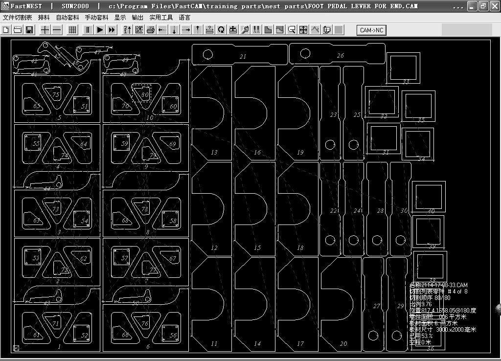 Main Function of FastCAM nesting software: CAD drawing, nesting, cutting programming, NC program verification and simulation, statistics of steel material and processing cost, NC and DXF/CAM/NC files conversion etc.