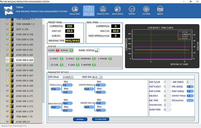 TWPM (TIME Welding Production Management) is based on TIME welding machines, which combines information technology and production management technology, to provide an effective means for production management, quality management, cost management, equipment management for production manager, providing an effective solution for digital management of welding site.