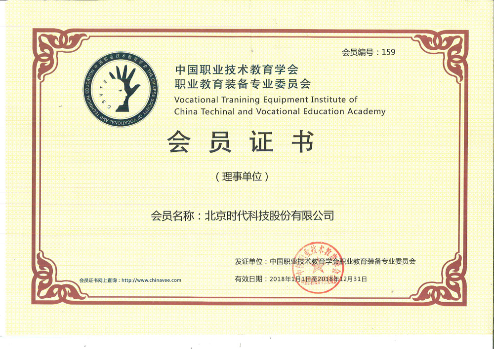 | 2016-03 | 中國職業技術教育學會職業教育裝備專業委員會會員證書 | 中國職業技術教育學會職業教育裝備專業委員會 |