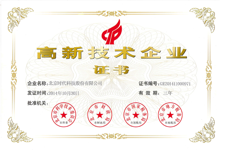 | 2015-01 | 高新技術企業 證書 | 北京市科學技術委員會 |